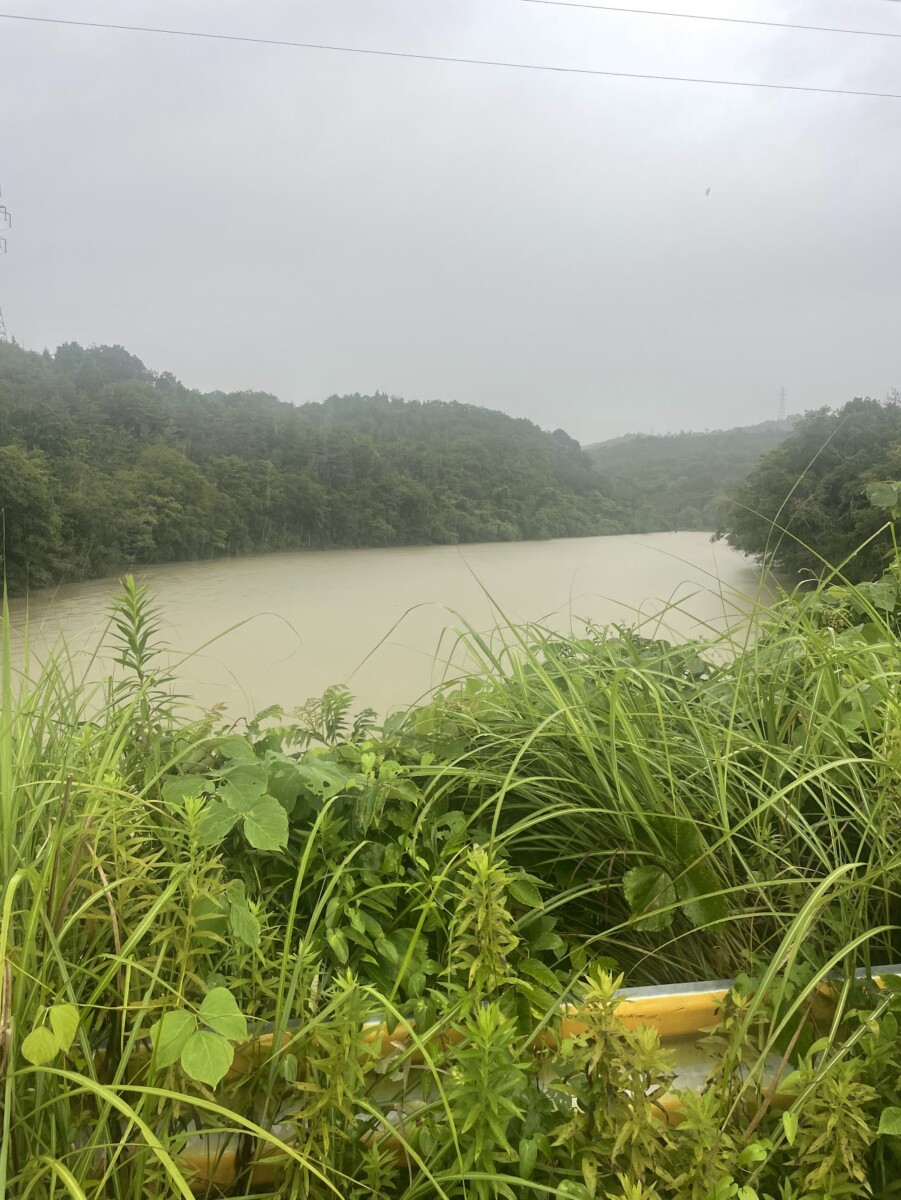 代表のヤマモトです。丸山の湖、大雨の直後、渡歩道の下流側です。昨日のご案内で、上流はまっ...