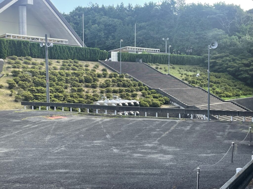法面を利用してツツジが整然と植えられている様子。