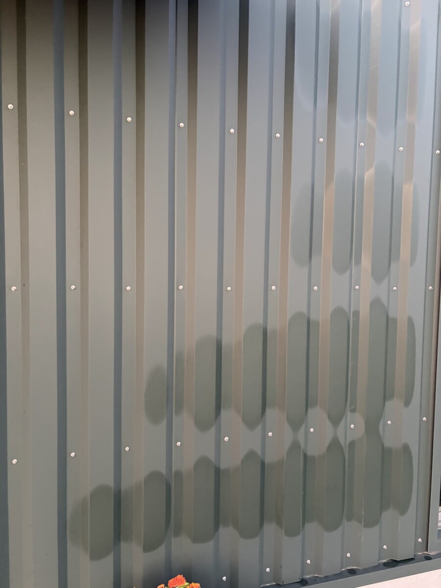 代表のヤマモトです。イマドキの外壁によくあるガルバリウム鋼鈑です。うちの事務所の外壁です...
