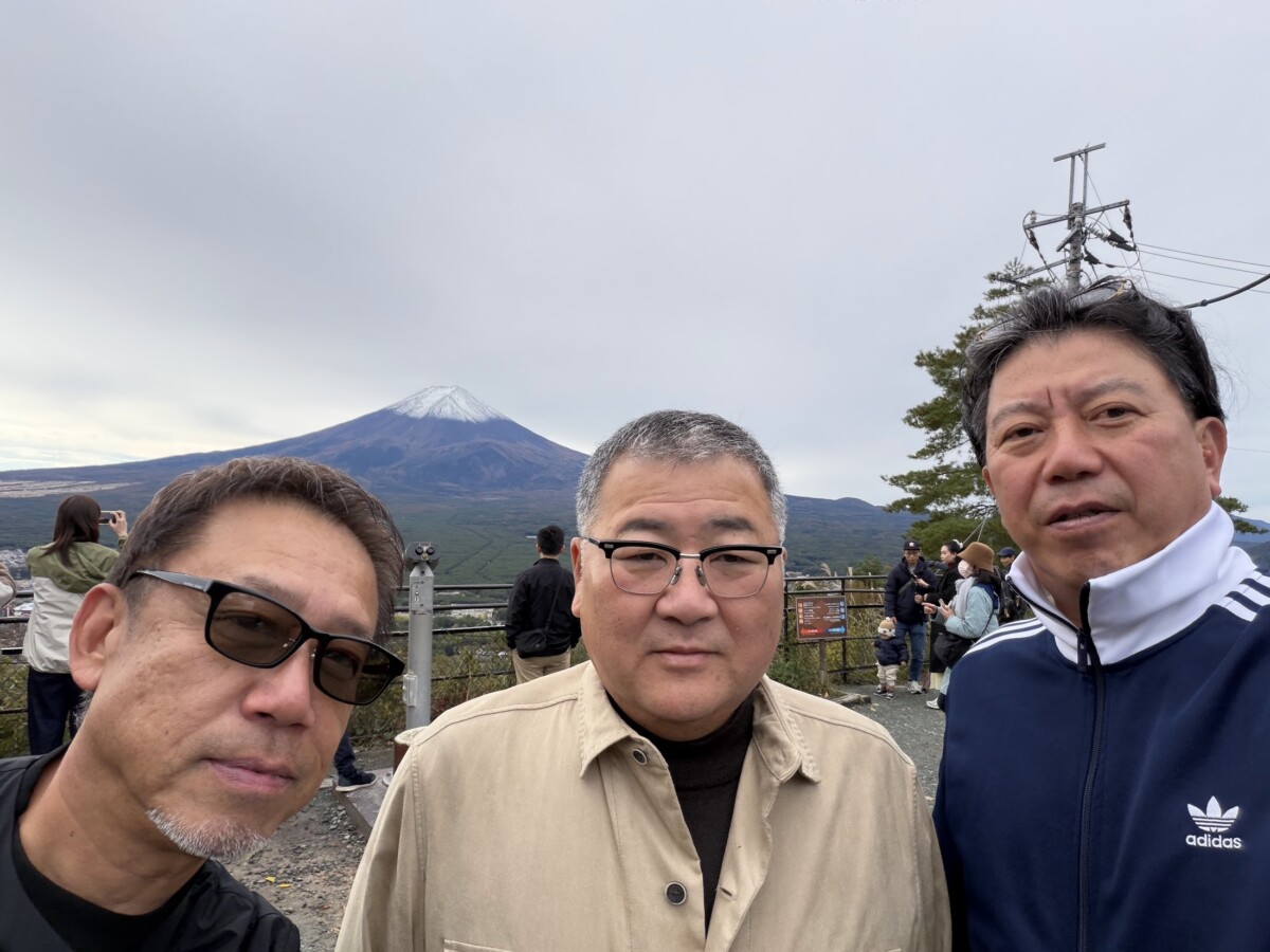 代表のヤマモトです。組合懇親バス旅行の帰りにベイブリッジから見る富士山です。水面、横浜港...